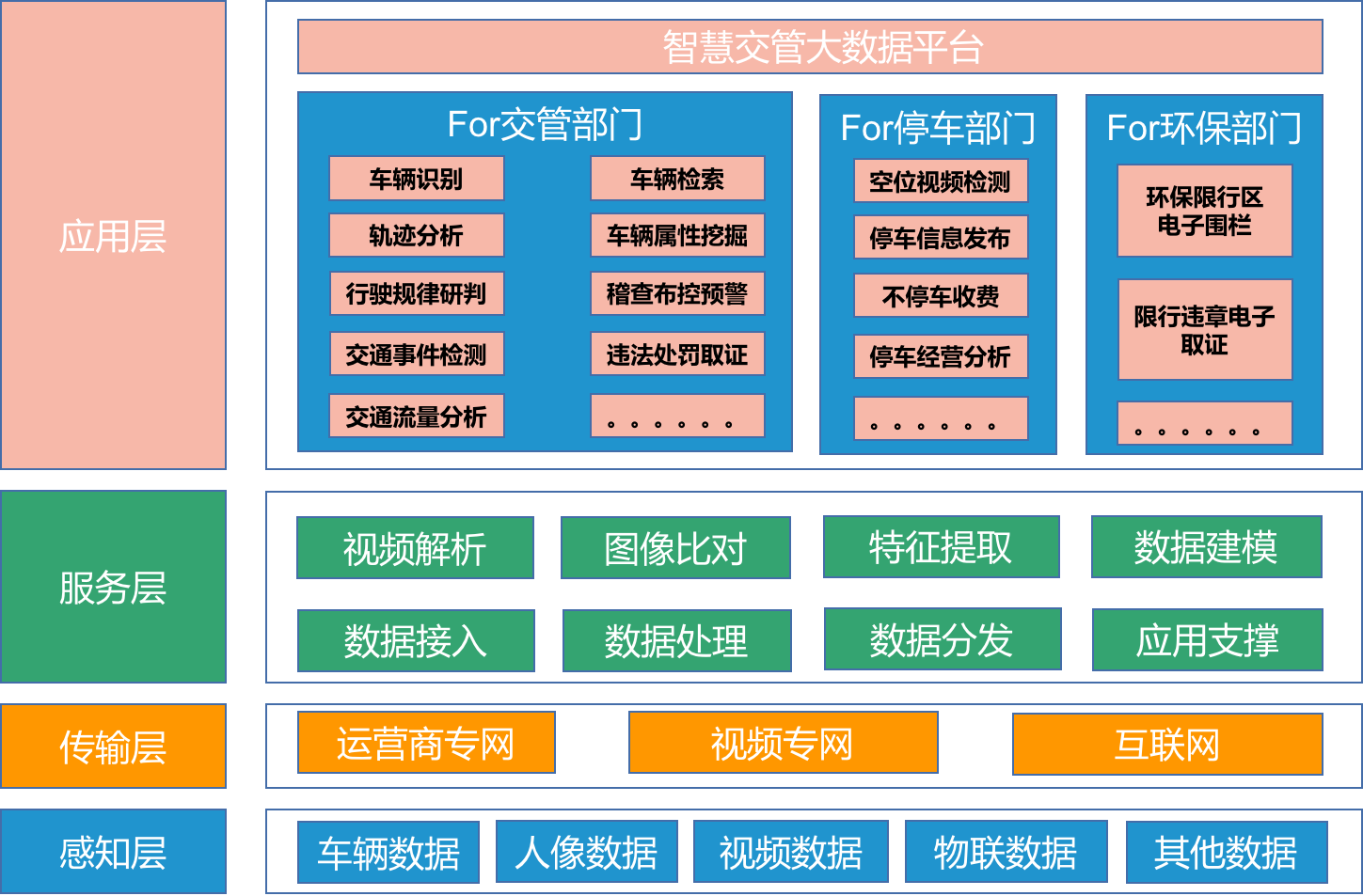 通過智運(yùn)智慧交管大數(shù)據(jù)平臺(tái)解決方案建設(shè),一方面通過先進(jìn)的AI視頻識(shí)別技術(shù),提升車輛檢測(cè)、車輛識(shí)別、車輛特征識(shí)別的準(zhǔn)確性,提高交管部門對(duì)于車輛信息采集能力,另一方面通過數(shù)據(jù)可視化、大數(shù)據(jù)模型分析等技術(shù)手段,實(shí)現(xiàn)車輛軌跡研判、稽查布控預(yù)警、交通事件檢測(cè)等功能,提升交管部門的交通管理能力和風(fēng)險(xiǎn)預(yù)判能力。同時(shí),平臺(tái)還提供面向交管部門的道路交通違法處罰服務(wù)、面向城管部門的城市停車收費(fèi)監(jiān)管服務(wù)和面向環(huán)保部門的城市區(qū)域限行電子執(zhí)法服務(wù)。